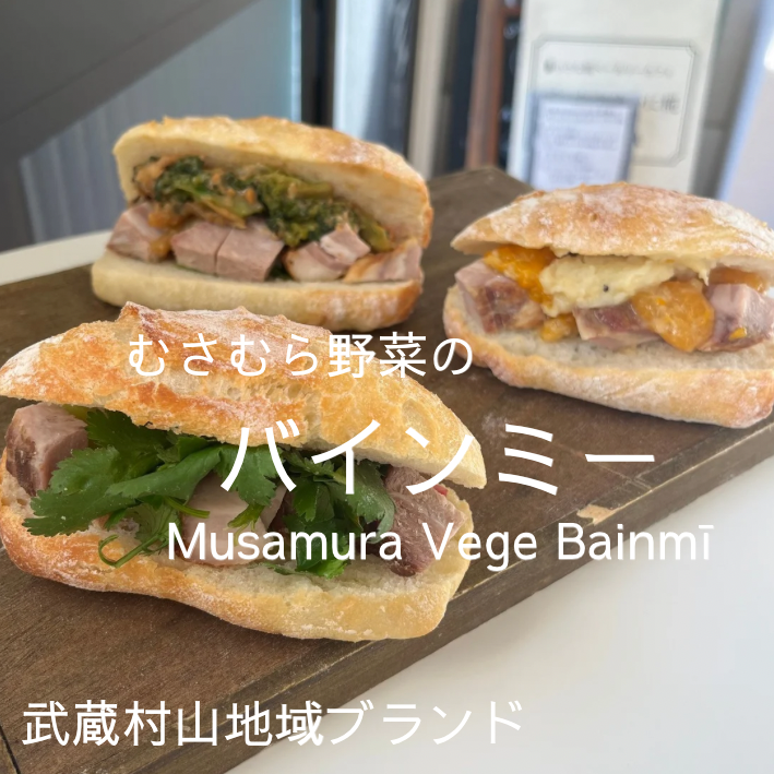 ohanaに自家製の豚バラや武蔵村山の野菜を味噌炒めや糠漬けにさた具材を挟んだベトナム風サンドイッチ